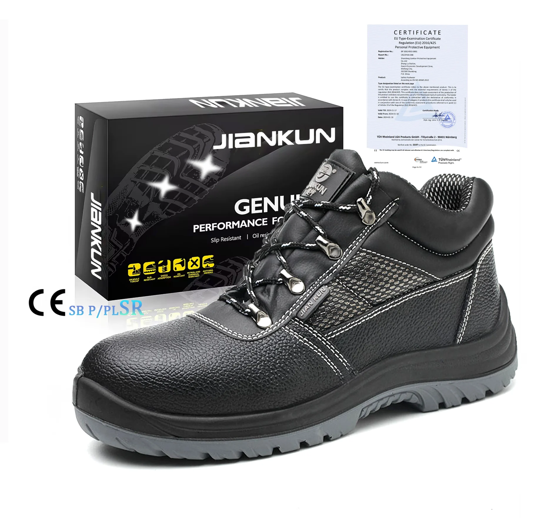 JIANKUN China S3 SR Customizable Safety Shoes Engineers Non-Slip Waterproof PU Steel Toe Outdoor Construction Work Summer Winter